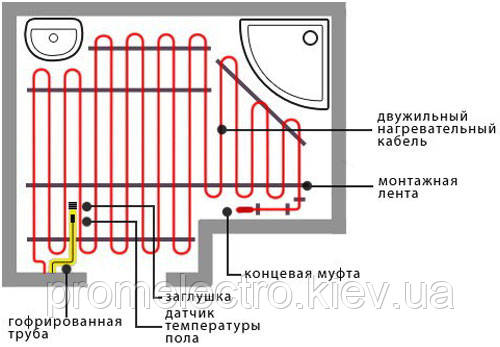 - Тип нагрівального кабелю — двожильний, з екраном (100% перекриття).