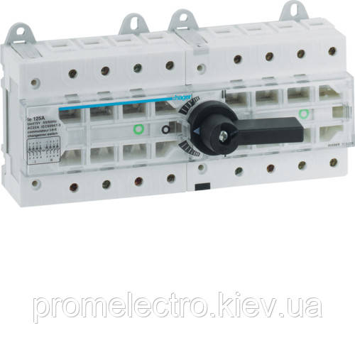 Перемикач Hager модульний трьохпозиційний I-0-II, 4п 125А 12м HI406R